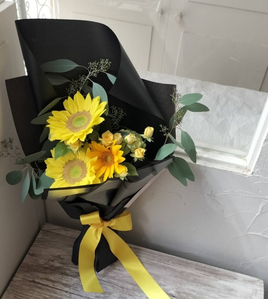 NO8194 | 花束 | ひまわりの花束のリクエスト、ブルーベリーの実添えてみました | ||
