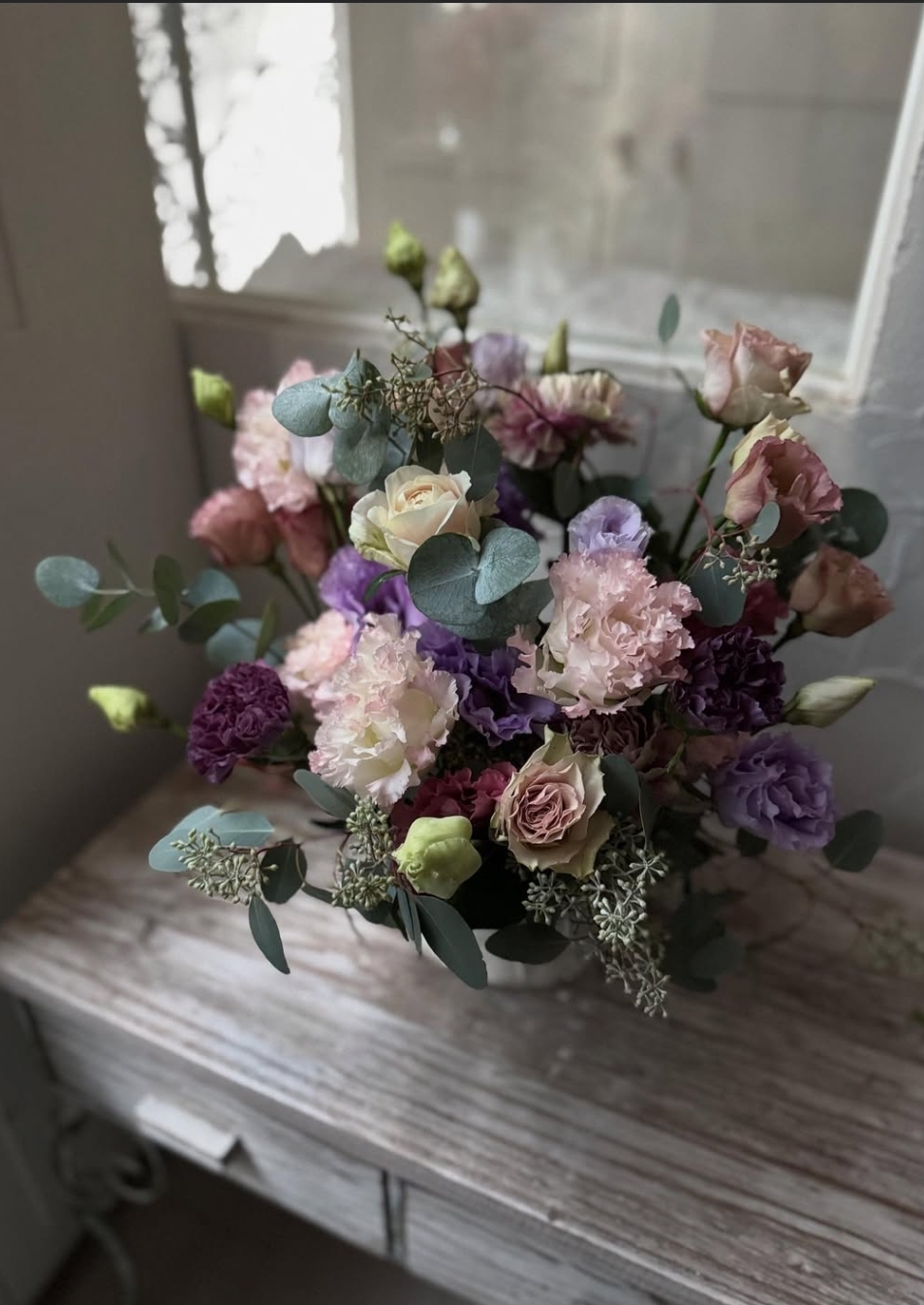 NO8190 | アレンジ | アンティークなKAORUKO色 紫陽花を入れて | ||