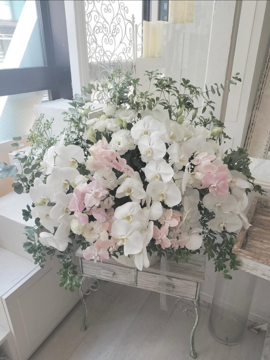 NO8240 | アレンジ | 不動産会社さんからのご依頼 胡蝶蘭の鉢を送るよりKAORUKOの胡蝶蘭アレンジメントの方が目立って素敵ということで | ||