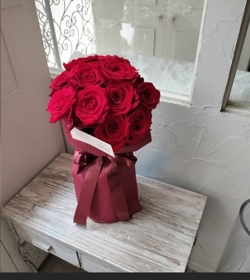 NO7893 | 花束 | 台湾からのご注文~前例写真から日本に住む彼氏さんへのプレゼント~パールのリボンがわりとともに | ||