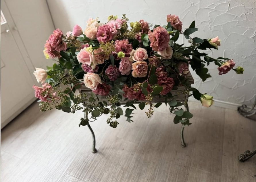 | NO1361 | アレンジメント | ¥12000 | 宝塚の方のファンたちとのお茶会。テーブルの上に置く花とマイクの花のご依頼 ボルドーとゴールドのリクエスト | |